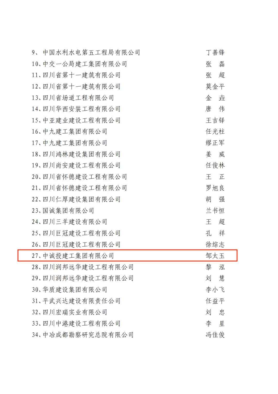 5月15日,住房城乡建设厅发布通报,对2022-2023年度四川对外开拓先进建筑业企业和优秀个人予以通报表扬,中诚投建工集团获评对外开拓