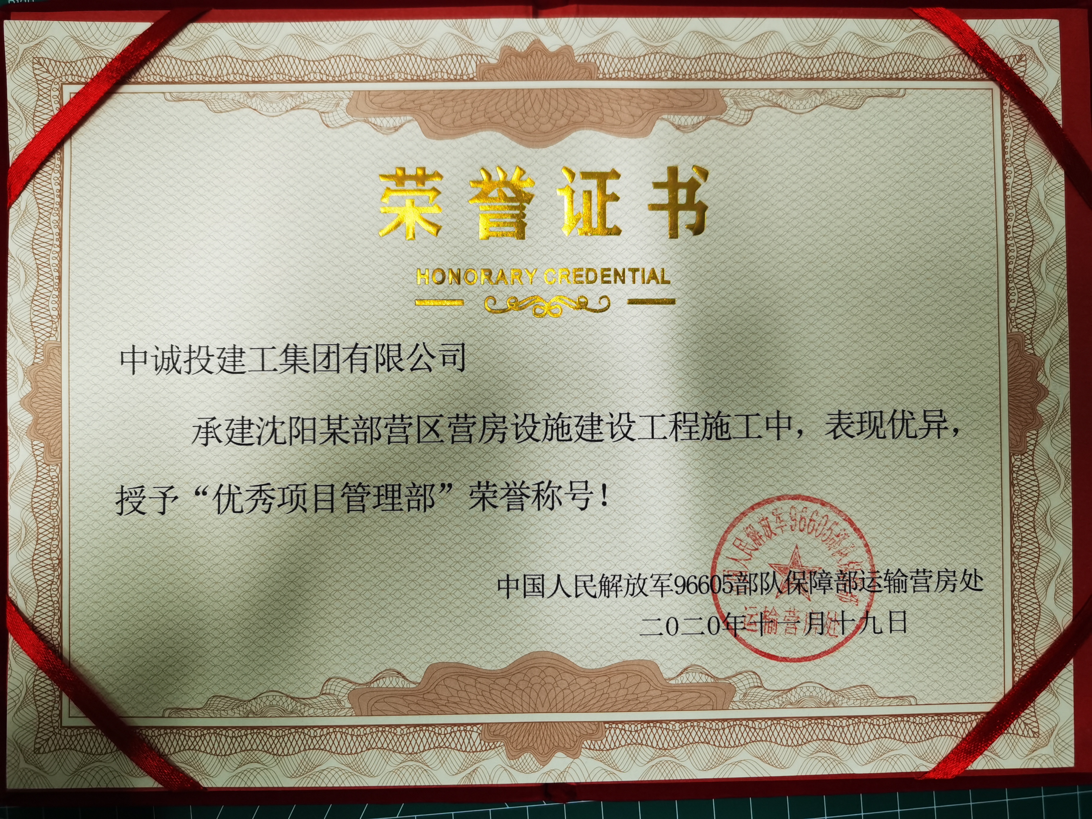 近日,集团公司辽宁分公司在承建辽宁省沈阳市某部队营区营房施工建设中,以优异的成绩荣获该部授予优秀项目管理部荣誉。 该项目