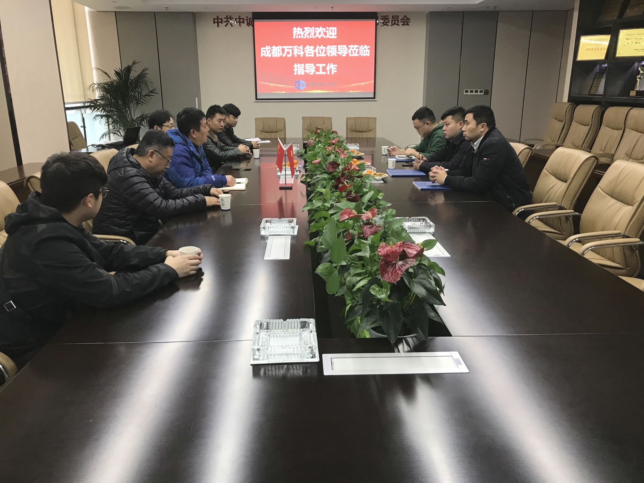 12月12日,成都万科公司黄高翔、杨亮等一行来集团公司参观考察,集团公司董事长助理陶华及相关业务部门负责人热情欢迎了黄高翔一行并