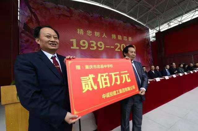 11月22日,在重庆市忠县中学建校80周年办学成果展示活动中,集团公司向该校捐赠资金200万元,用于帮助学校建设与发展。 近年来
