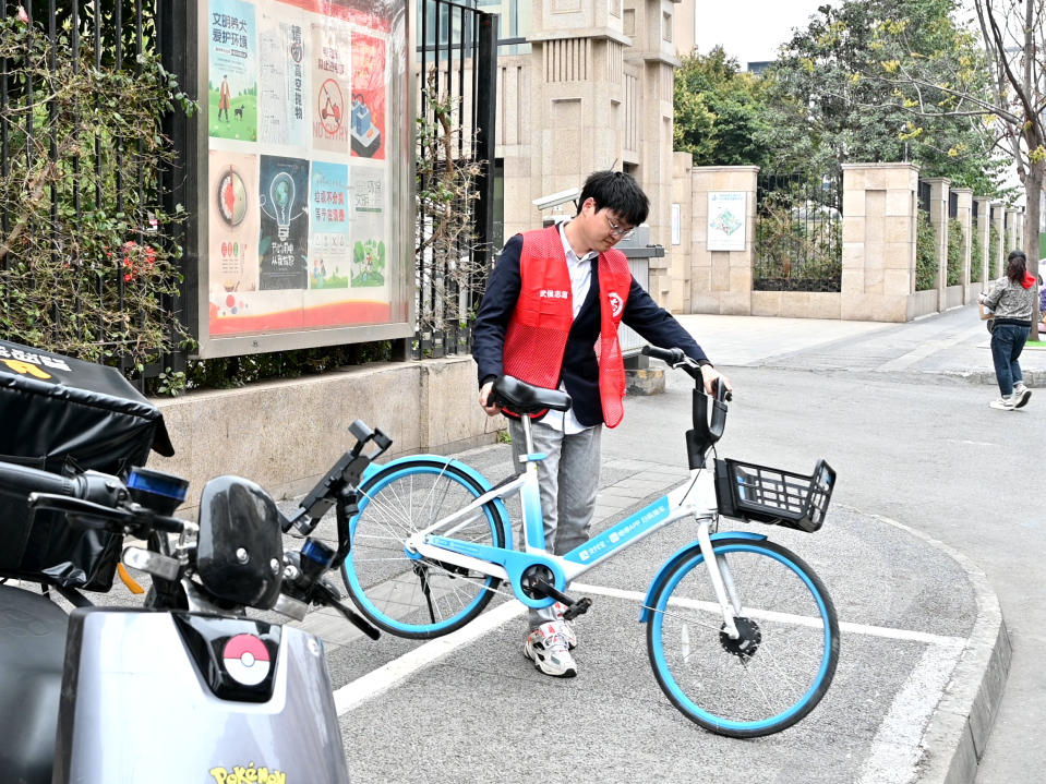 随后,全体同志穿上红马甲,戴上红袖章,在社区工作人员的引导下,迅速分为两个小组,分别进入到七里社区居民点,对小区道路、绿化带进行了“地毯式”清洁。大家弯着腰,拎着垃圾袋,一边捡拾散落在道路和草坪的垃圾,一边对随地吐痰、乱扔垃圾、乱堆乱放等不文明行为进行劝导,引导居民自觉践行文明行为,主动为创建文明典范城市、喜迎大运会营造良好的环境和氛围。同时,大家还一起动手,将小区门口的共享单车进行规整摆放,为居民使用单车提供便利。