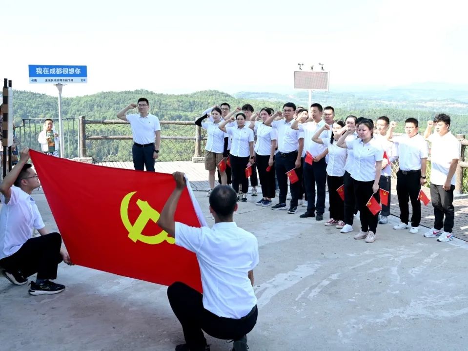 登顶后,党委举行了齐唱党歌、重温入党誓词系列活动。在党委书记张阜文的带领下,全体同志庄严肃立面向党旗,高举右手重温入党誓词,重忆作为一名共产党员的革命初心,在一声声的庄严誓言中更加坚定自己的理想信念,深切领悟党员的历史使命。