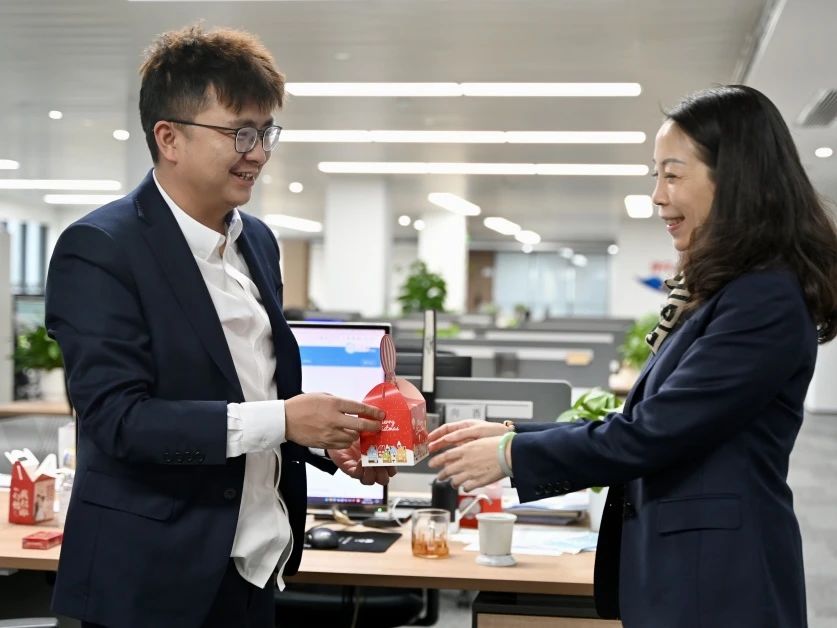 午餐后,集团公司工会精心准备了代表着平安、幸福和美好的“平安果”,工会主席张妮亲手送到每一位员工的手中,祝福大家生活平平安安,甜甜蜜蜜,愿每一位中诚投人都被生活温柔以待,平安常伴左右!