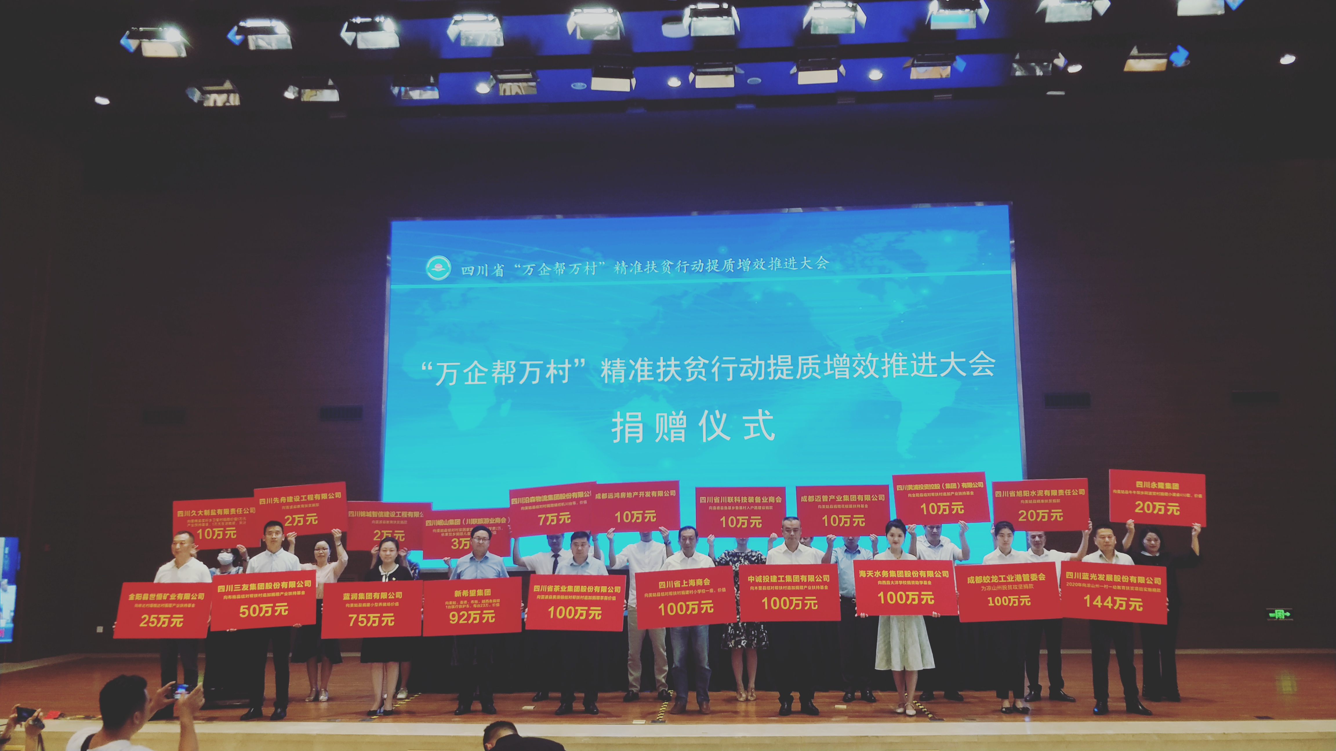 5月6日,四川省“万企帮万村”精准扶贫行动提质增效推进大会在成都召开,集团公司荣获“2019年度助力凉山脱贫攻坚行动先进民营企业”称号,并现场捐赠爱心善款100万元,用于帮扶凉山彝族自治州木里县乔瓦镇锄头湾村决战决胜脱贫攻坚。