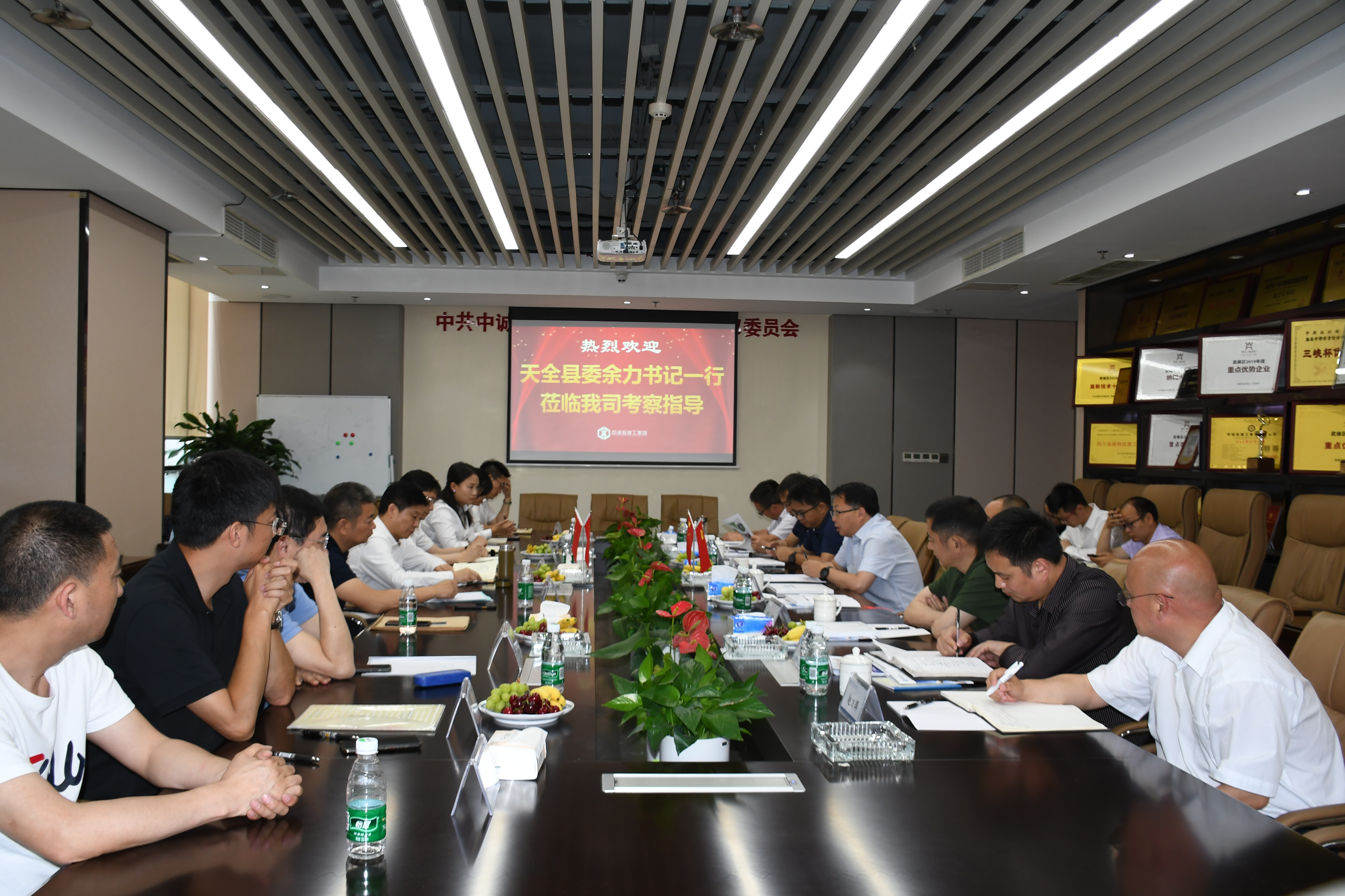 5月21日上午,四川省雅安市天全县县委书记余力一行8人莅临集团公司考察。集团公司董事长郭代军,副董事长尹东,副总经理张阜文、陶华等领导热情接待并参加了座谈会。