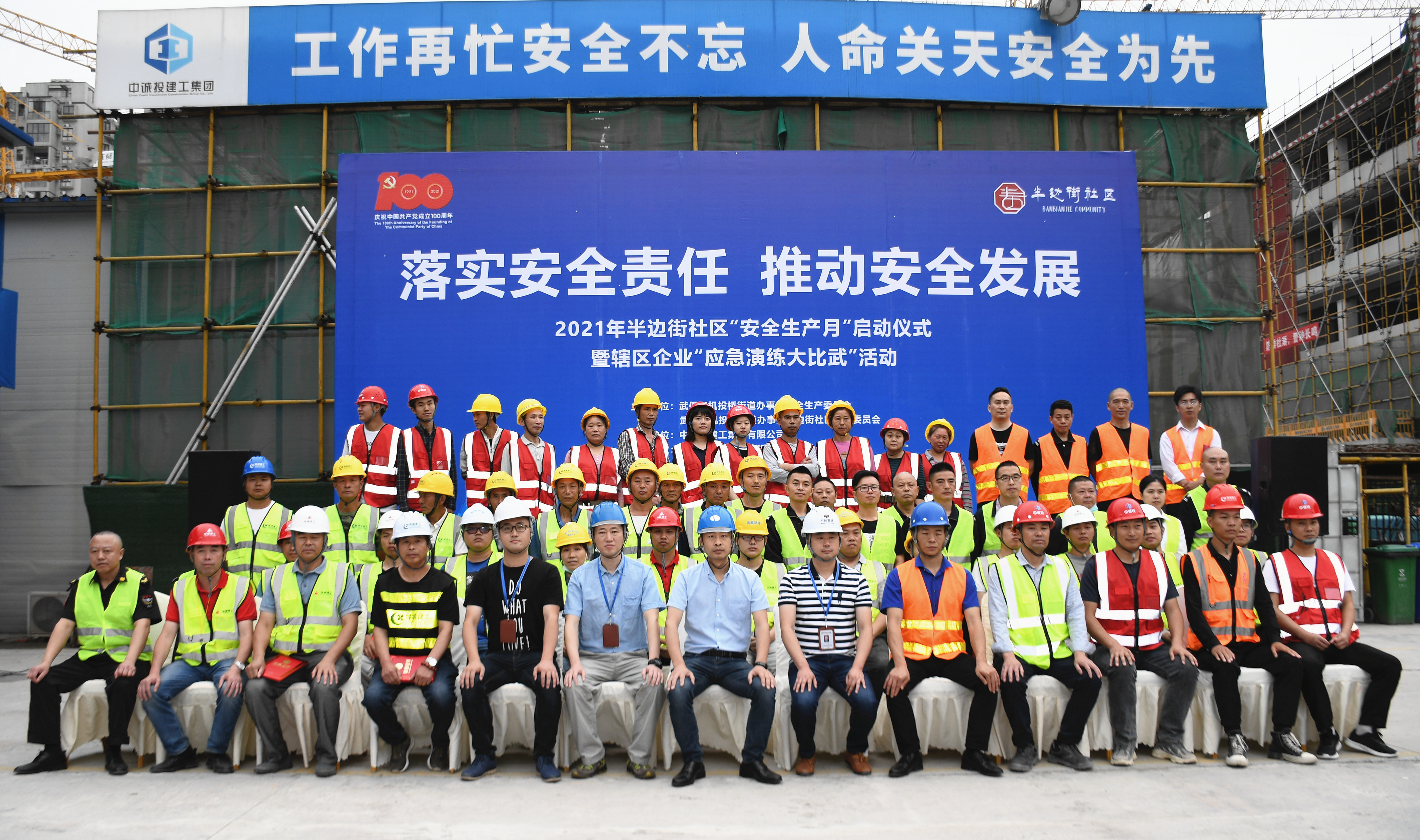 6月1日上午,2021年成都市武侯区半边街社区以“落实安全责任 推动安全发展”为主题开展“安全生产月”启动仪式暨辖区企业“应急演练大比武”活动,在集团公司承建的武青西一路小学项目隆重举行。