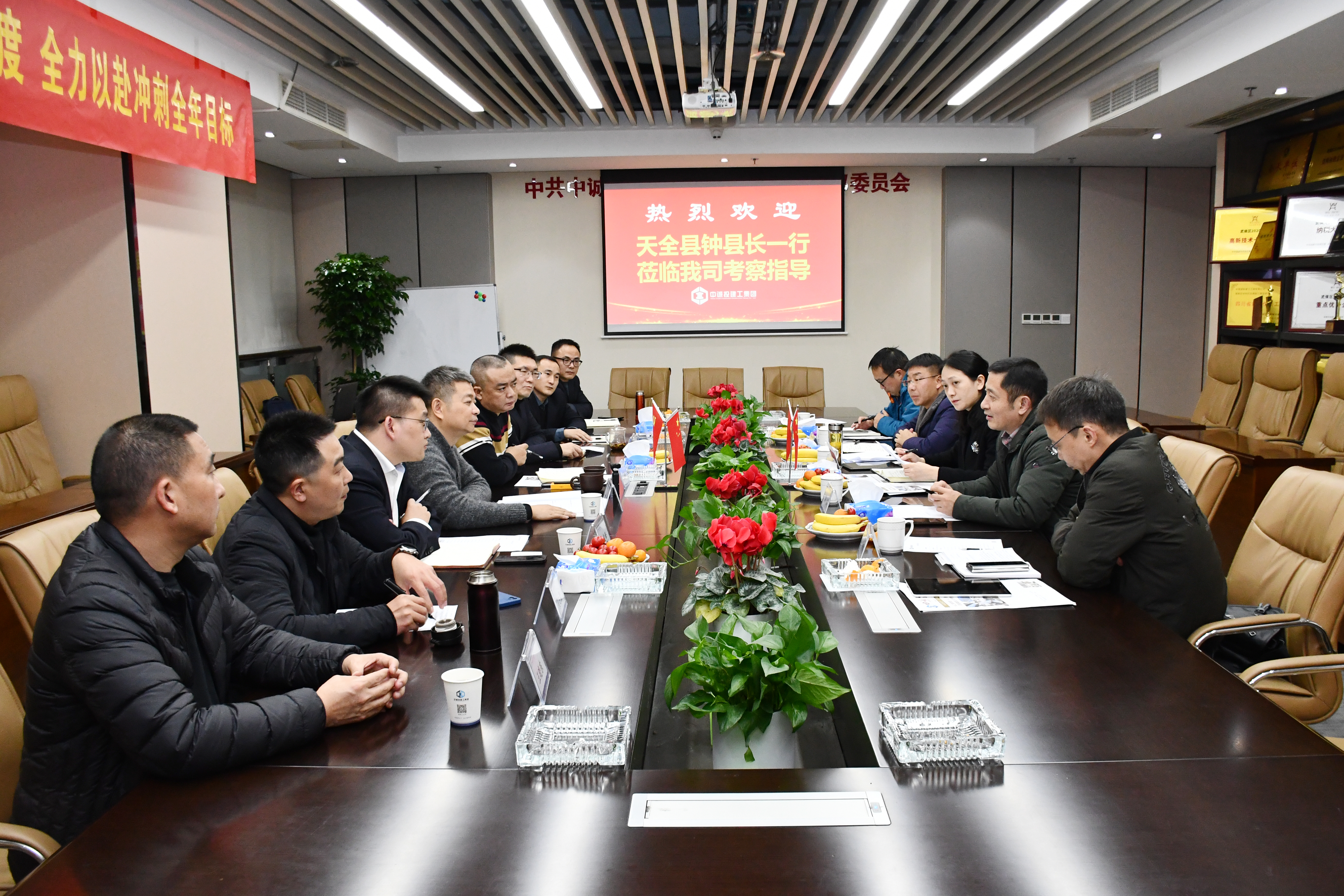 12月7日下午,四川省雅安市天全县委副书记、代理县长钟雪琴携考察团一行莅临集团公司考察交流,进一步深化项目合作。集团公司副董事长尹东、总经理张辉、副总经理张阜文等领导热情接待并参加座谈会。