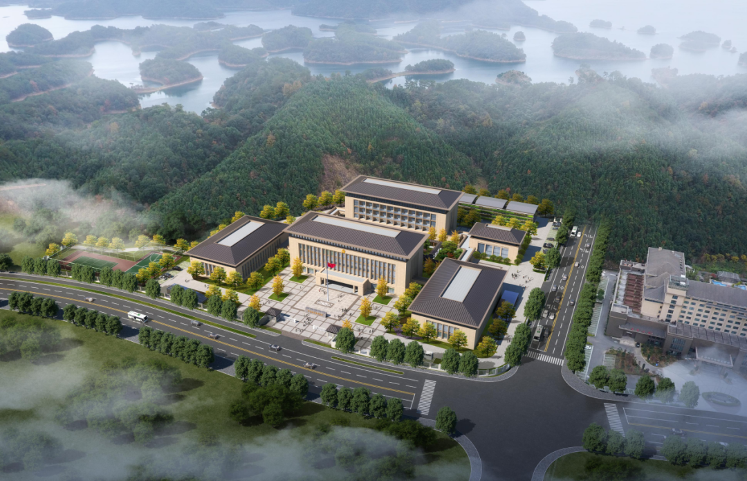 浙西红色教育中心项目位于杭州千岛湖镇珍珠半岛,总建筑面积约34604平方米,主要建设内容为教学综合楼、文体中心、培训宿舍、报告厅、党史馆、地下停车库及室内外绿化等其他配套设施。