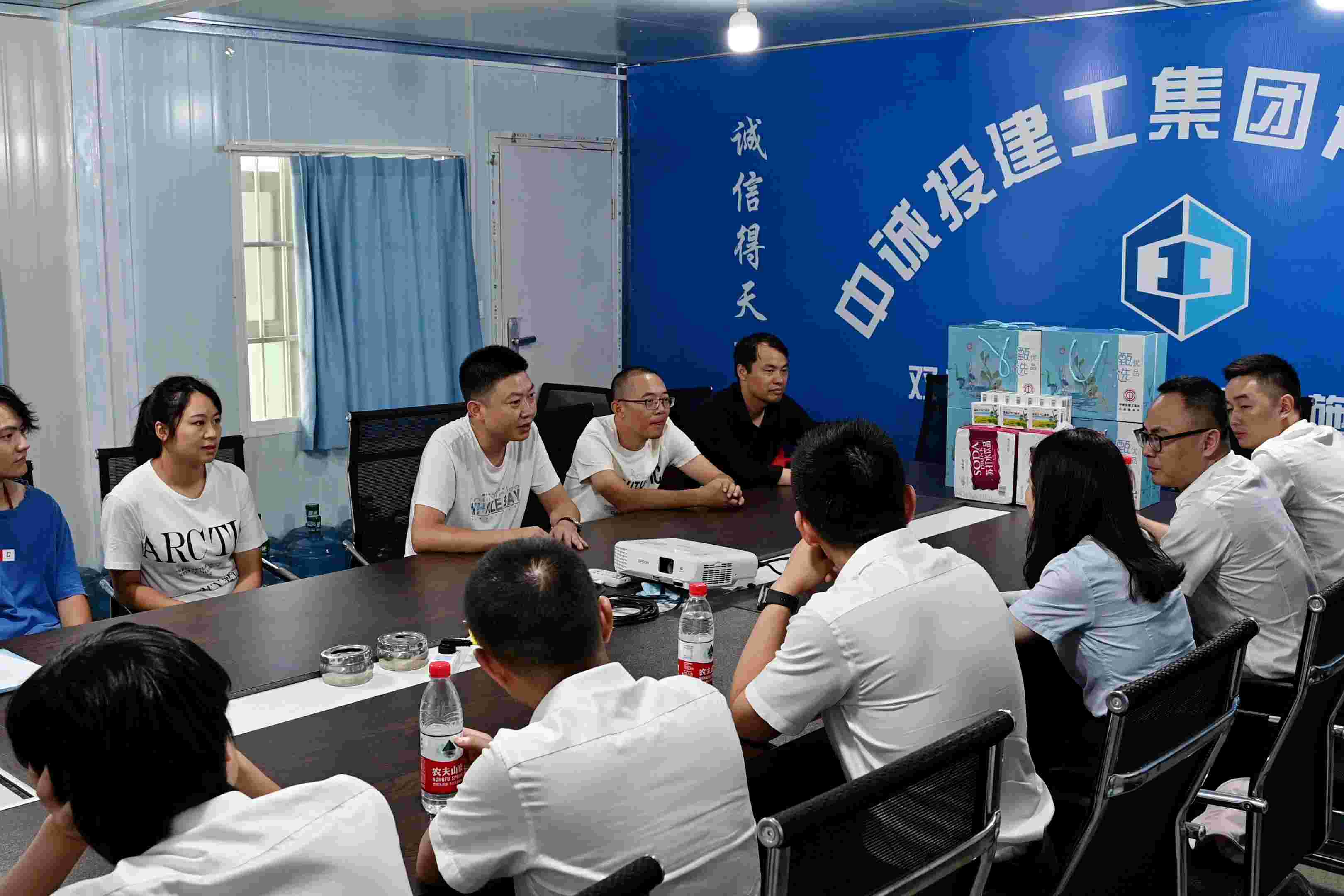活动中,慰问队伍一行先后来到永盛路社区综合体施工项目、双丰东路社区养老设施项目及中诚·铂悦府项目现场,为项目部发放了矿泉水、防暑药品、日用品等清凉物资,并对大家不畏酷暑坚守工作岗位的精神表示衷心的感谢。每到一个项目,慰问队伍一行认真检查项目的安全防护和防暑降温措施,并通过座谈会对项目安全生产、劳动保护、生活和夏季防暑降温工作等落实等情况进行详细了解,要求项目部要加强对高温、高空及露天作业的监督检查力度,尽量避开高温时间段施工,严格控制室外作业时间和劳动强度,有效地控制高温危害,预防中暑和各类事故发生;要做到“夏日防暑,预防为主”,科学合理安排作息时间,加强防暑降温宣传教育和管理措施,不断增强一线作业工人的自我保护意识,牢固树立安全理念;要在确保安全健康的前提下,全力以赴抓质量、抢进度、创佳绩,完成各项施工节点目标。