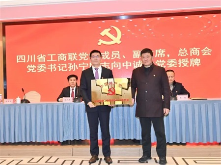 四川省工商联党组成员、副主席、四川省总商会党委书记孙宁为华球体育党委授牌。