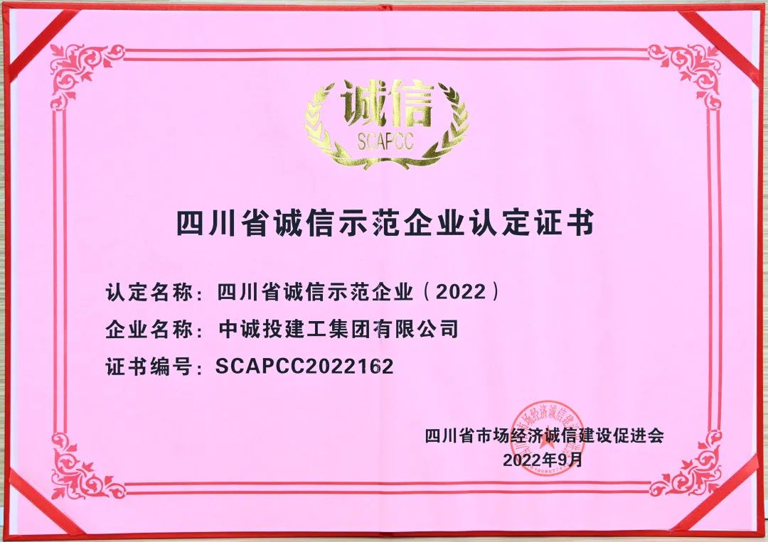 近日,四川省市场经济诚信建设促进会对外公布2022四川省诚信示范企业认定名单。中诚投建工集团凭借良好的信誉,获评“四川省诚信示范企业”。这是近三年来,中诚投建工集团第二次获此认定。