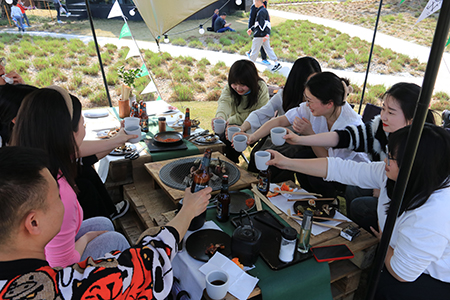 当天下午,在集团公司工会的组织下,集团公司领导以及工会全体女职工一同来到成都麓湖郊野。在营地绿茵中,一顶顶白色天幕,一张张木质小桌,一把把月亮椅,让女职工们感受到了春天的气息。大家三三两两地坐在一起,迎着春风,晒着暖阳,围炉煮茶,聊着生活和工作中的趣事,享受着乡野的美景,欢声笑语环绕耳边。