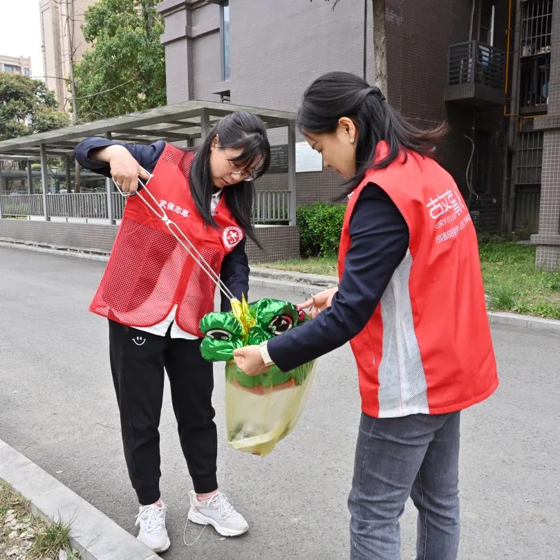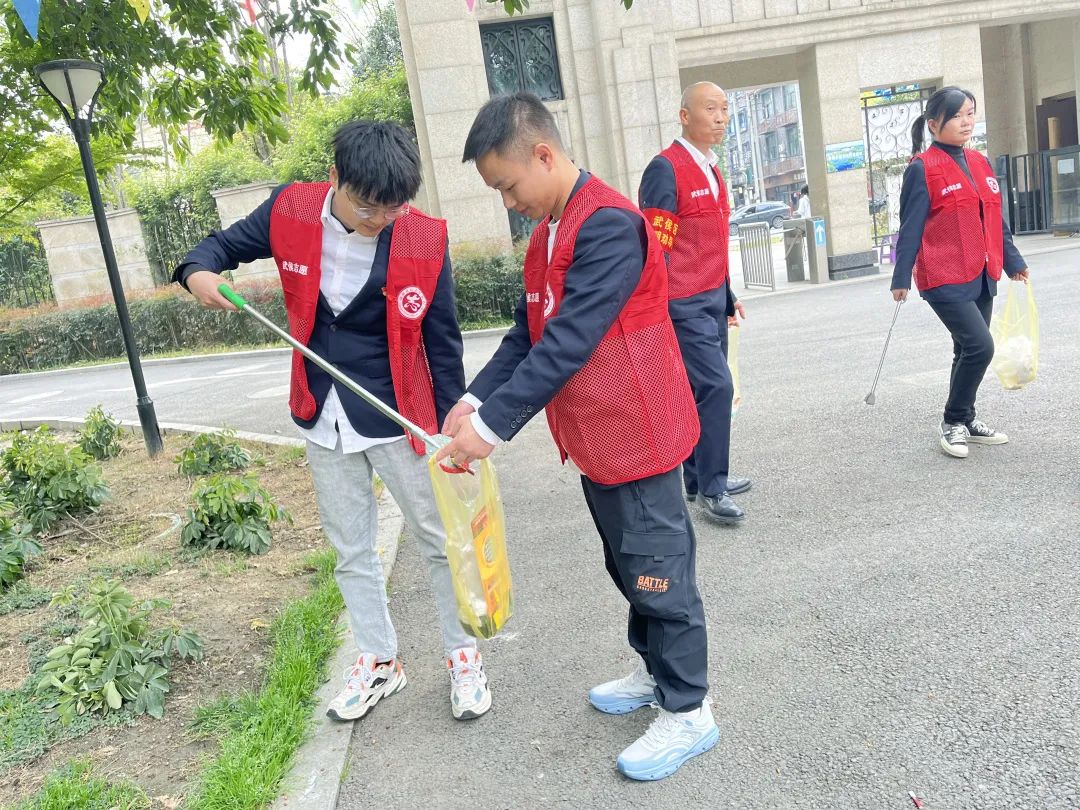 随后,全体同志穿上红马甲,戴上红袖章,在社区工作人员的引导下,迅速分为两个小组,分别进入到七里社区居民点,对小区道路、绿化带进行了“地毯式”清洁。大家弯着腰,拎着垃圾袋,一边捡拾散落在道路和草坪的垃圾,一边对随地吐痰、乱扔垃圾、乱堆乱放等不文明行为进行劝导,引导居民自觉践行文明行为,主动为创建文明典范城市、喜迎大运会营造良好的环境和氛围。同时,大家还一起动手,将小区门口的共享单车进行规整摆放,为居民使用单车提供便利。
