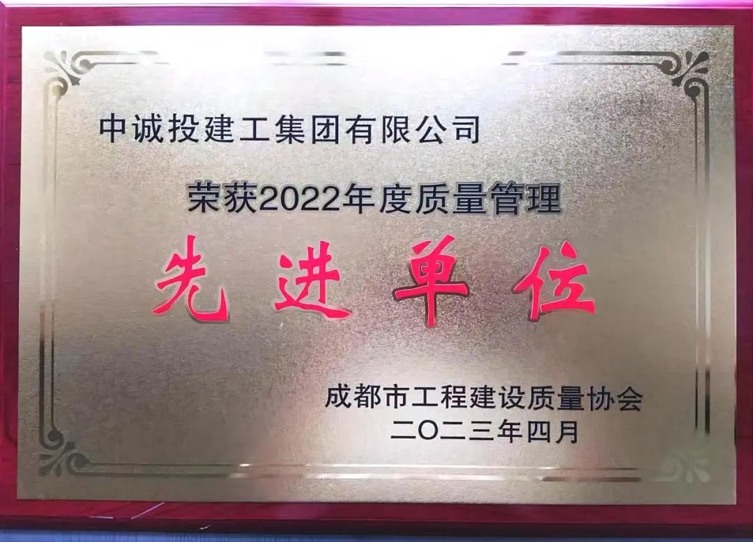 此项荣誉的获得是对中诚投建工集团2022年在质量管理方面作出的努力和贡献的高度认可。中诚投建工集团将以此殊荣为契机,秉承“诚信得天下,匠心铸辉煌”的企业精神,进一步加强质量管理体系建设,全面提高工程建设质量管理水平,以更高的标准和更严的要求建造更多优质工程,为推动城市建设与发展贡献中诚投力量。