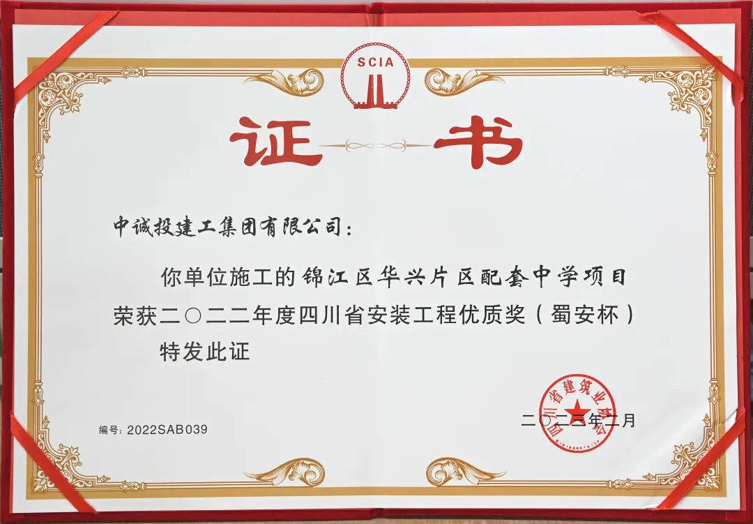 近日,四川省建筑业协会发布《关于表彰2022年度四川省安装工程优质奖(蜀安杯)的决定》,中诚投建工集团承建的锦江区华兴片区配套中学项目获此殊荣。