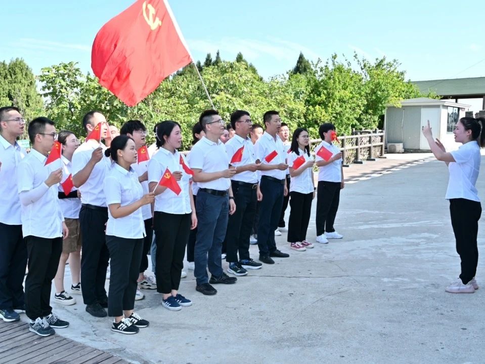 “没有共产党,就没有新中国……”随后,大家挥舞着手中的党旗,深情高唱《没有共产党就没有新中国》。在慷慨激昂的歌声里,中国共产党救国救民的奋斗历程宛如画卷般呈现在大家眼前,每一位党员心潮澎湃,凝聚起一股实干争先的磅礴力量。