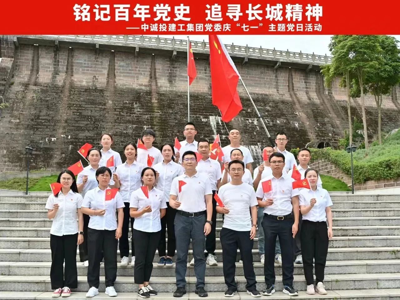 为庆祝中国共产党成立102周年,激励广大党员继承发扬伟大的建党精神,提振干事创业精气神,在集团公司加快高质量发展中勇当先锋、担当有为。6月30日下午,中诚投建工集团党委组织直属党支部、分公司党支部及项目党支部在蓉党员、预备党员、入党积极分子赴金龙长城开展“铭记百年党史 追寻长城精神”主题党日活动。