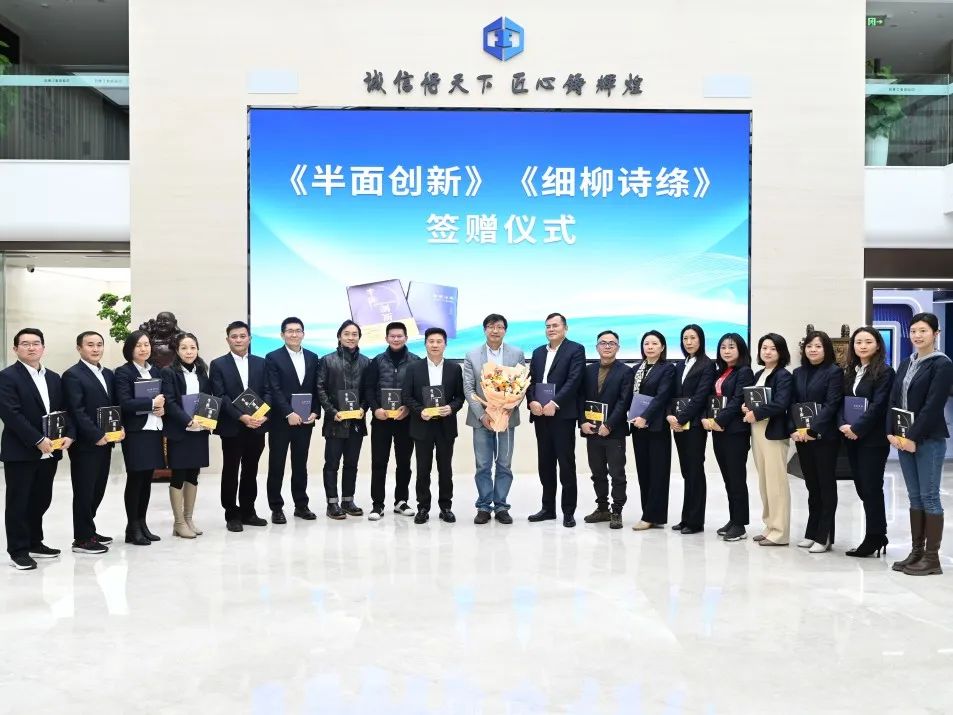 培训结束后,周教授为集团公司管理层赠予了一份沉甸甸的厚礼——周教授历时十载创作诗论合集《细柳诗绦:新古典主义诗歌拓荒集》以及历时十三载迭代之全新5.0版《半面创新:创新的可计算学说》。两本书籍中,不仅有贯通中西、兼容科技人文、究际天人分合之探索,也有丰富的企业案例分析,是有志于变革创新的企业高层管理人员、创新创业者、商学院学生的必读参考书,对于相关领域的研究者及普通读者也颇具启发和借鉴价值。