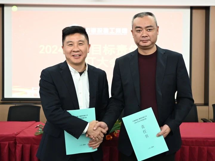 签订仪式上,董事长郭代军与总经理张辉签订《2024年度生产经营目标责任书》;总经理张辉分别与各管理中心负责人签订《2024年度生产经营目标责任书》;总经理张辉分别与管理班子成员、下属公司负责人及项目经理签订《2024年度市场经营目标责任书》。