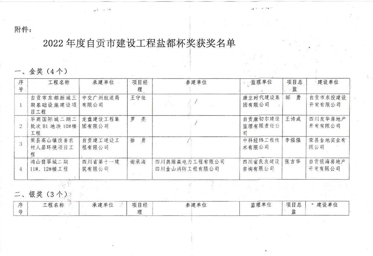 自贡职业技术学校大楼建设项目工程荣获“盐都杯”银奖