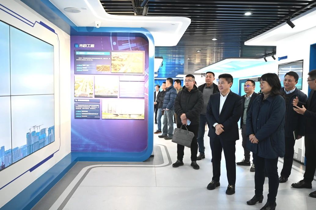 在郭代军董事长的陪同下,刘莉副区长一行走进中诚投建工集团展厅。通过细致的讲解,调研组全面了解了中诚投的发展历程、市场布局、工程业绩、企业荣誉以及党建文化等方面的情况。